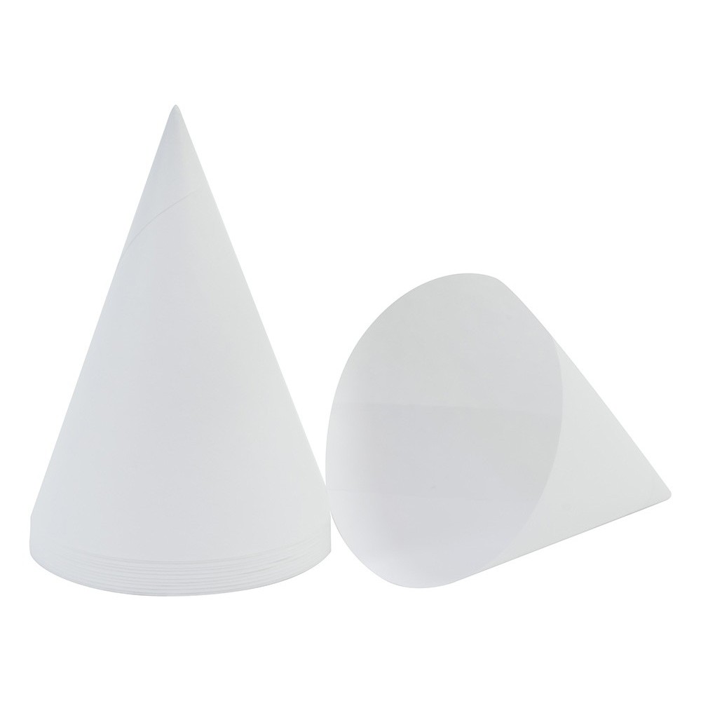 Cono de papel bond desechable en color blanco completamente biodegradable. Ideal para agua de garrafón o dispensar de medicamentos y jarabes. Cuenta con 20 cajillas de 250 piezas cada una. Cada cono tiene una capacidad de 170 ml.