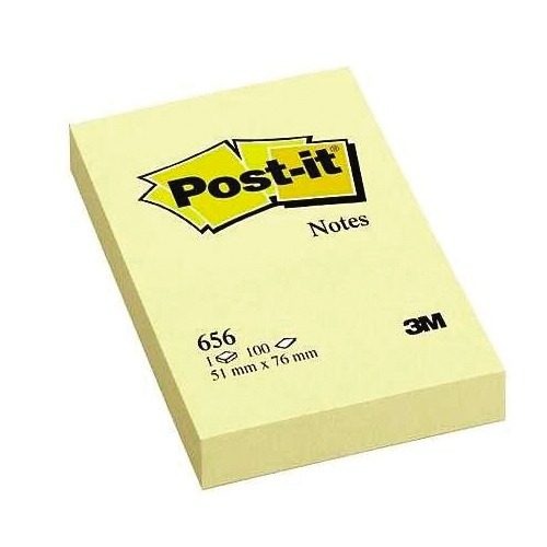 Block de notas post-it amarillo con 100 hojas de 2"x3" 3M modelo 656. c/100 hojas.