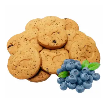 Las galletas con blueberry y chía están endulzadas con jarabe de agave orgánico. Libre de ingredientes de origen animal, y no contiene lácteos.